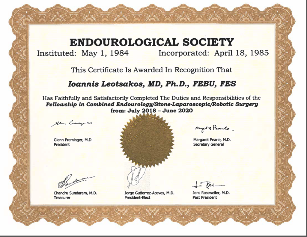 Απόφοιτος Αμερικανικής Ενδοουρολογικής Εταιρείας